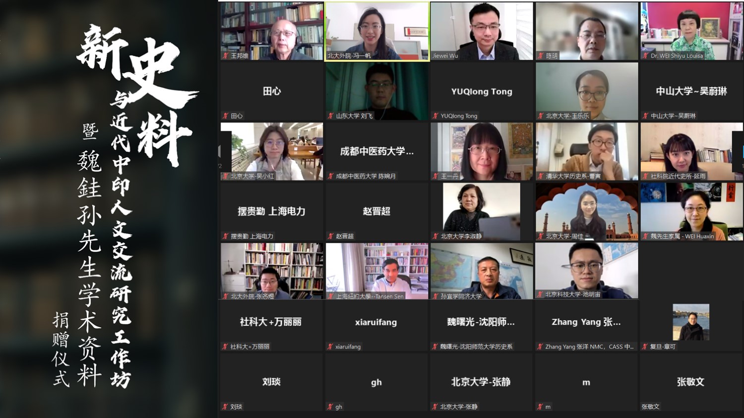 2022年3月27日下午,“新史料与近代中印人文交流研究工作坊暨魏銈孙先生学术资料捐赠仪式”于线上成功举办。本次活动由九游会官方网站,九游会jiuyouhui(中国)、北京大学东方文学研究中心联合主办,国家社会科学基金重大项目“‘太平洋丝绸之路’档案文献整理与研究”项目组和教育部人文社会科学重点研究基地重大项目“中国与南亚的文学与文化交流研究”项目组协办。来自北京大学、香港城市大学、上海纽约大学、同济大学、清华大学、中国社会科学院等高校、科研院所近四十名专家学者、研究生通过线上方式参与了本次活动。