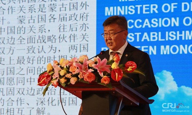 蒙古国大呼拉尔成员,蒙古国国防部部长尼亚马•恩赫包勒德在致辞中表示:“2019年是蒙中建交70周年。过去70年间,永久邻邦的中蒙两国成功经历了历史考验,双边关系本着相互尊重彼此独立、主权、领土完整、互不干涉内政、平等互利、和平共处、尊重各自选择的发展道路的原则而顺利发展。我为两国全面战略伙伴关系的扩大和发展感到由衷的高兴。”