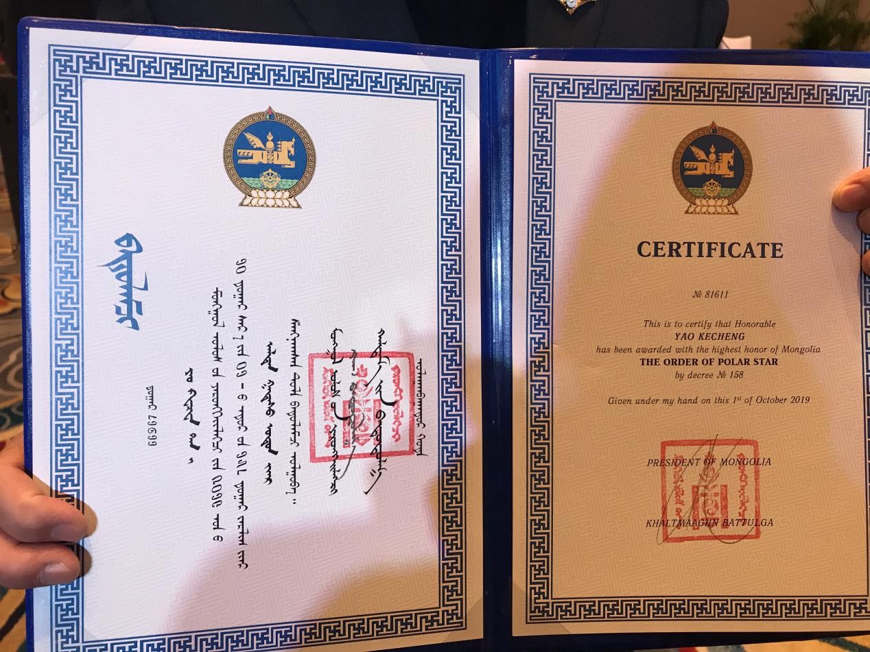 北京大学蒙古学研究中心副教授姚克成获得蒙古国“北极星”国家勋章